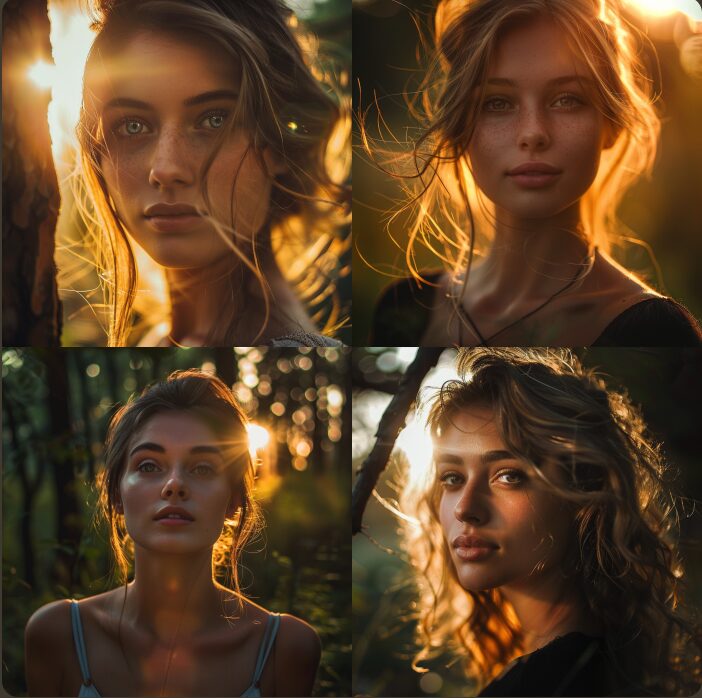 例: /imagine Portrait of woman close-up golden hour lighting blurred forest background (女性のポートレート close-up golden hour lighting ぼやけた森の背景)
